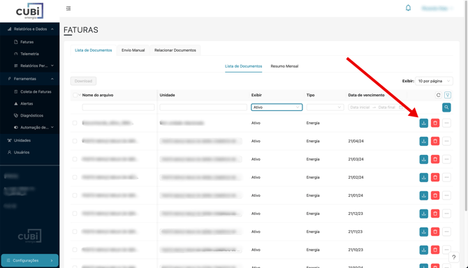 - Para fazer o download de um arquivo invividual clique no ícone de download na direita;